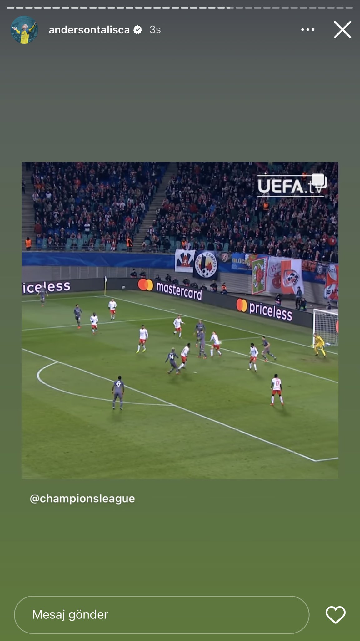 Haberler FutbolAnderson Talisca’dan Beşiktaş paylaşımıAnderson Talisca’dan Beşiktaş paylaşımı 1 Şubat 2023, 17:56 yayınlandı 1 Şubat 2023, 18:03 güncellendi 0dk, 38sn Anderson Talisca Beşiktaş haberleri + - Anderson Talisca’nın aynı zamanda 1 Şubat doğum günü. Şampiyonlar Ligi hesabının paylaşımını alıntılayarak paylaşan yıldız oyuncunun bu paylaşımı, Beşiktaş taraftarını heyecanlandırsa da bunun transferle bir bağlantısının olmadığı öğrenildi.Anderson Talisca’nın Beşiktaş paylaşımıDiyagonalÖnceki Sayfa 1 2 3Anderson Talisca’dan Beşiktaş paylaşımı Yorum Yap Paylaş