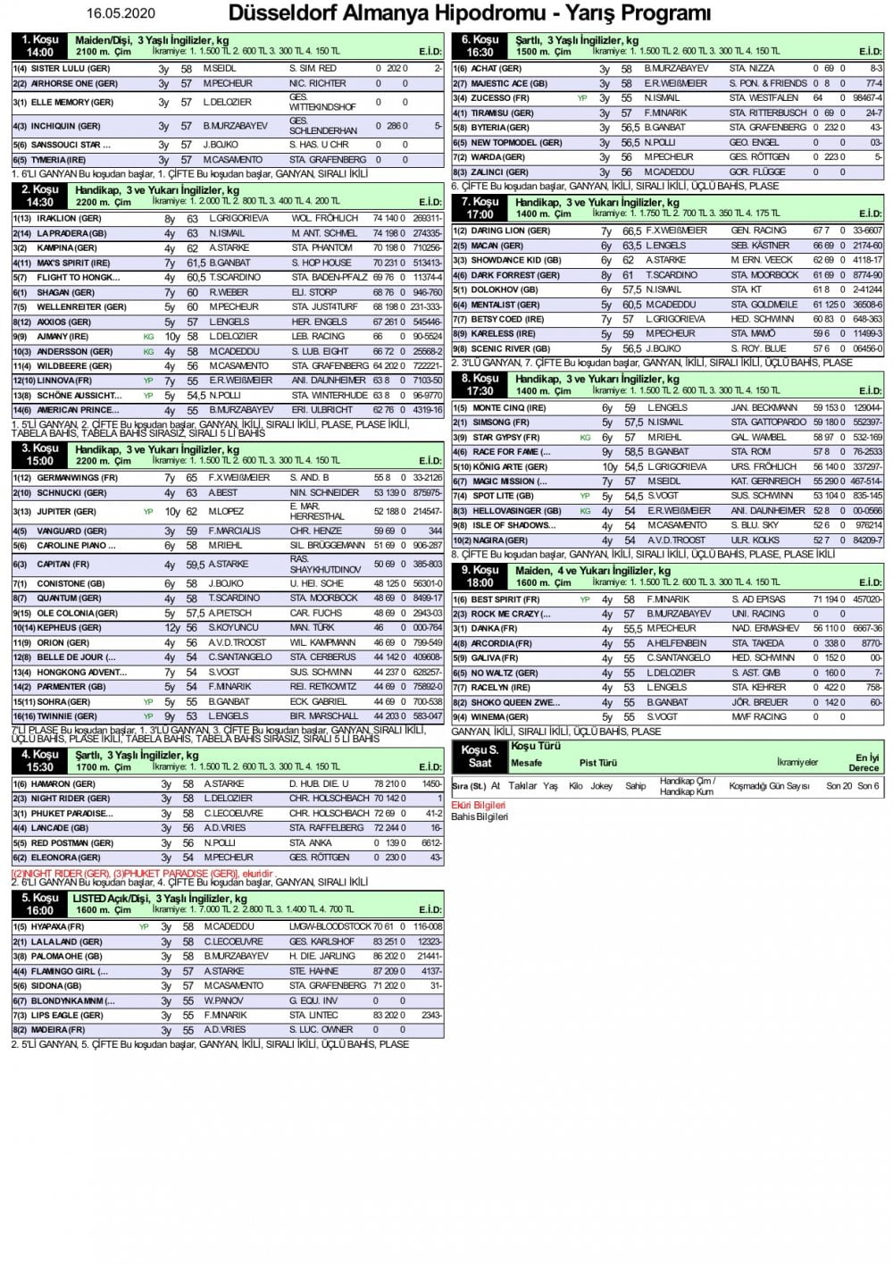 16 mayıs 2020 at yarışı bülteni | at yarışı bülteni