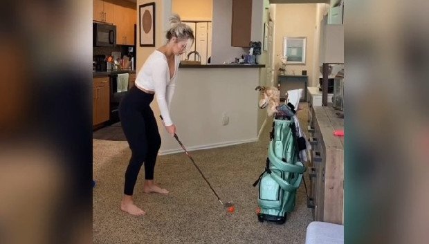 Amerika’da önde gelen golf oyuncularından biri olan Paige Spiranac, korona virüs günlerini evde golf oynayarak geçiriyor.